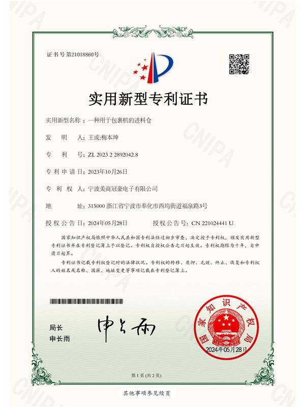 • 實(shí)用型專利證書